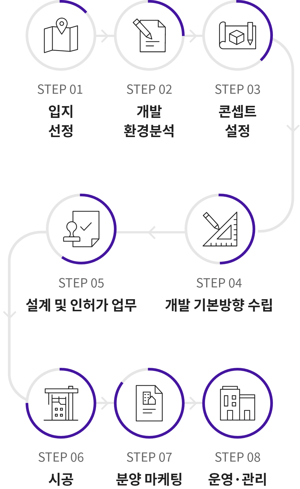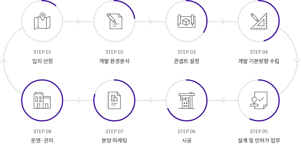 여러 단계의 부동산 개발 업무가 유기적으로 이루어지는